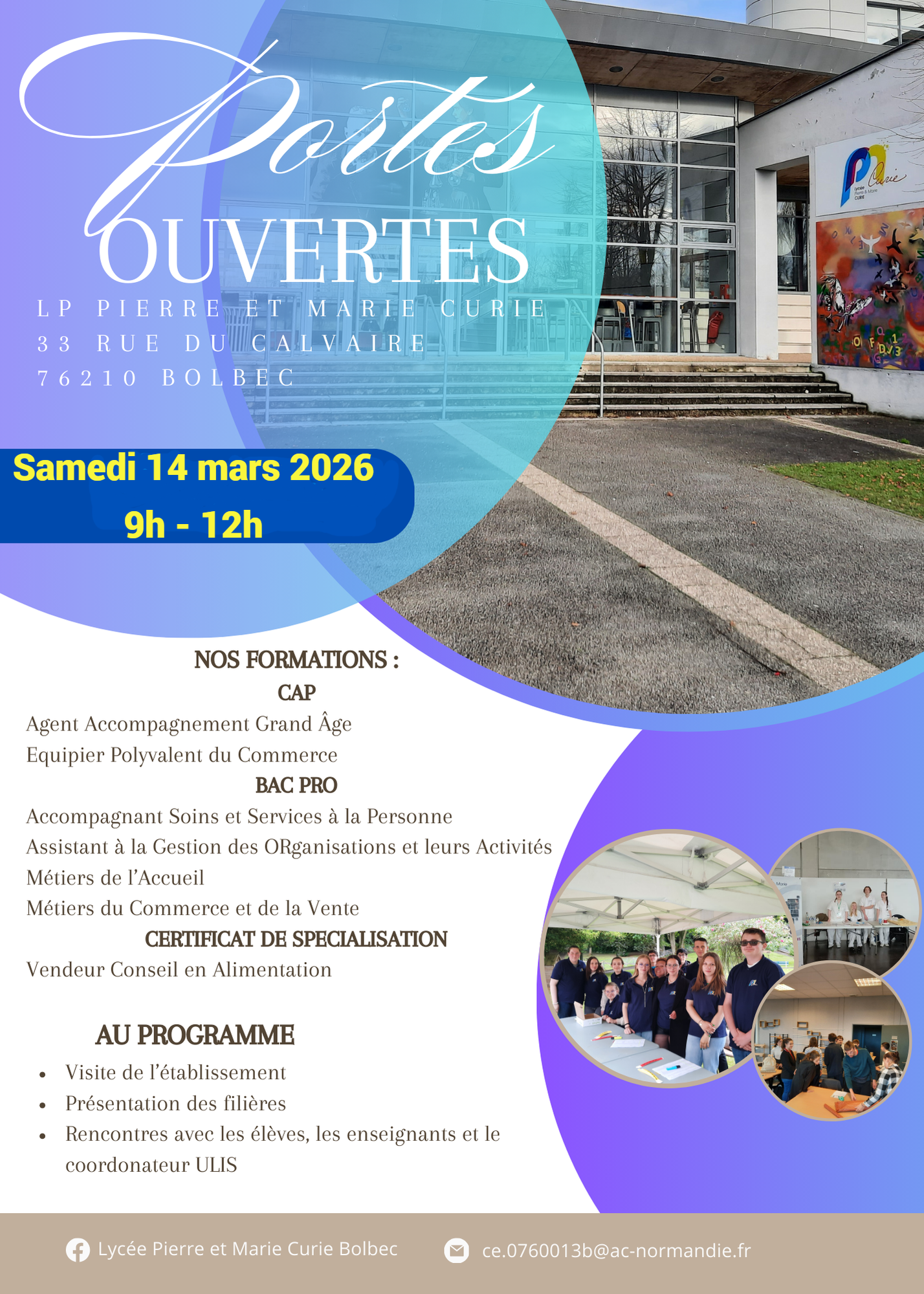 L’occasion de venir visiter l’établissement, découvrir nos filières et rencontrer les élèves et les enseignants.